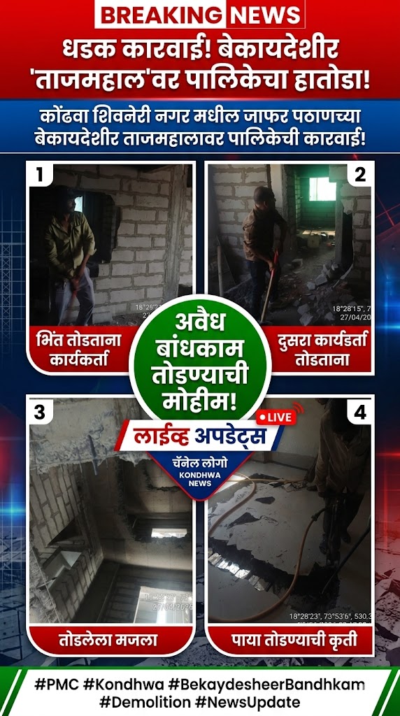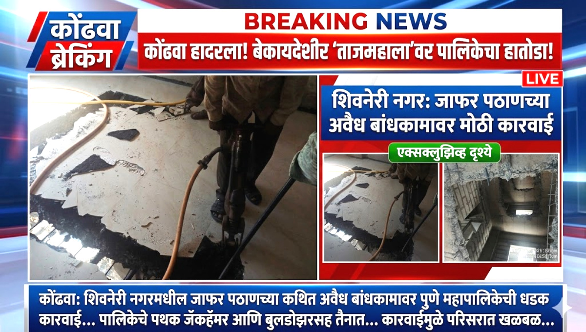 कोंढव्यात ९ मजली बेकायदेशीर इमारतीवर पुणे महानगर पालिकेची जोरदार कारवाई, जाफर पठाणचा ताजमहालचा स्लॅब तोडला